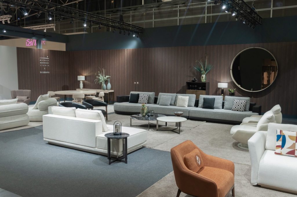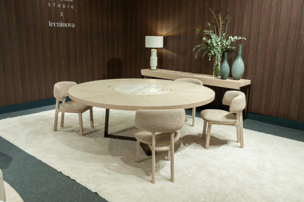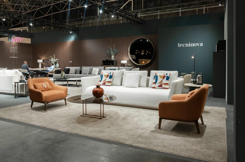 Desarrollo de stand y dirección de arte para Tecninova en Feria Hábitat Valencia 2023. Continuando con el estilo del año anterior, las maderas naturales, los volúmenes y detalles de alta costura predominan en esta colección.